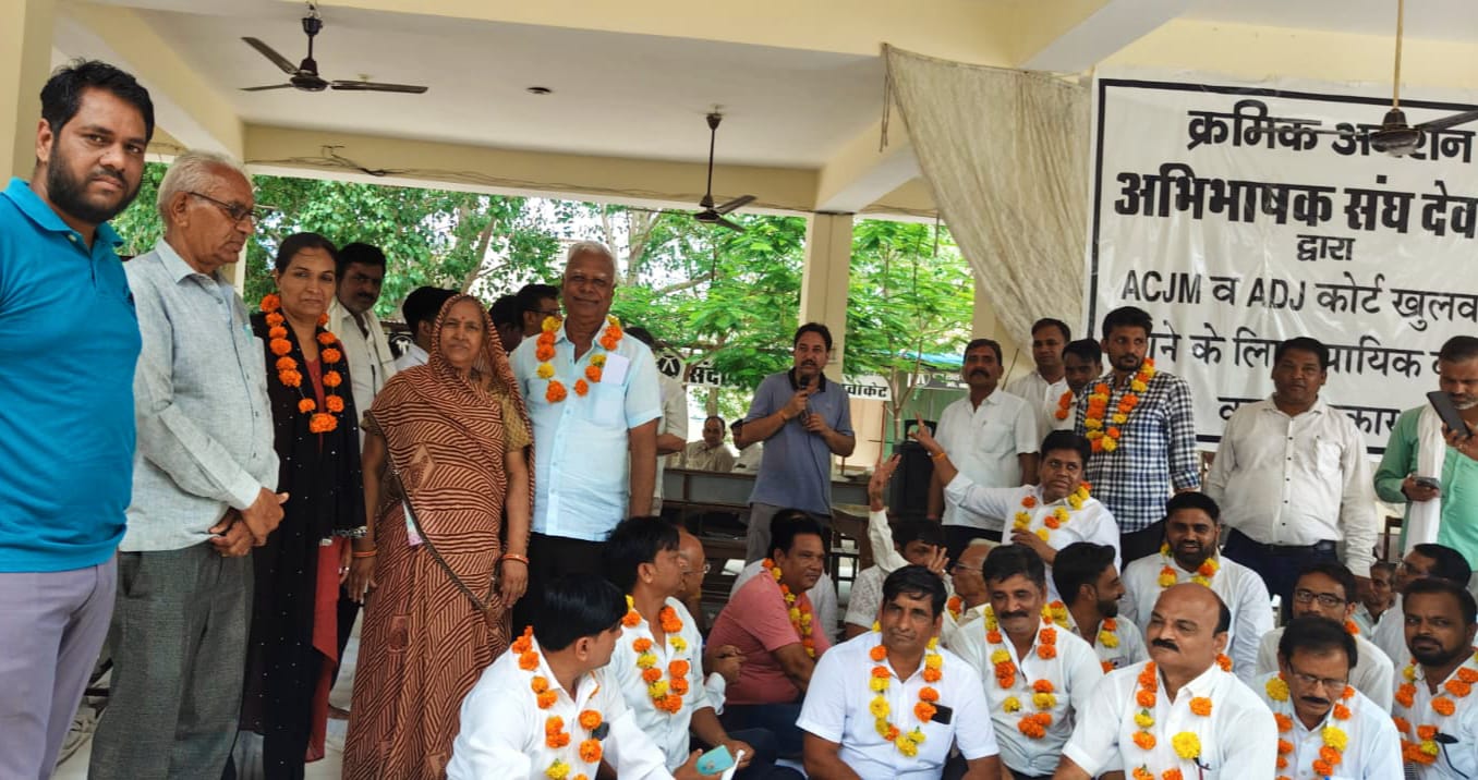 Deoli News 18 जुलाई (दैनिक ब्यूरो नेटवर्क) अभिभाषक संघ देवली द्वारा एसीजेएम और एडीजी कोर्ट खुलवाने की मांग को लेकर किए जा रहे न्यायिक कार्य के बहिष्कार व क्रमिक अनशन के छठे दिन गुरुवार को धरना स्थल पर विभिन्न संगठनों ने समर्थन दिया।