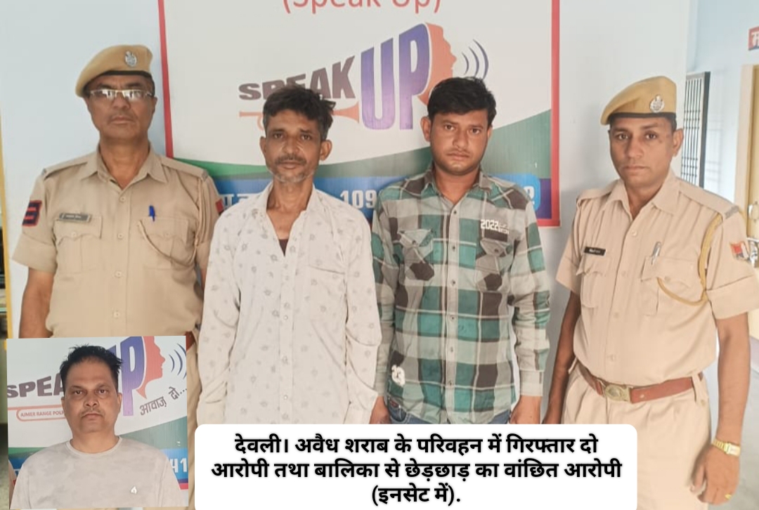 थाना प्रभारी अयूब खां के अनुसार थाना पुलिस को अजमेर बायपास नाना होटल के समीप एक वैगन आर कार में शराब का परिवहन करते दो जने मिले। पुलिस ने चालक धनराज उर्फ धन्नालाल पुत्र हीरालाल मीणा निवासी बस स्टैंड लुहारी कला थाना हनुमान नगर व राजेंद्र सिंह पुत्र मोहनलाल मीणा निवासी तेजाजी मोहल्ला लुहारी कला को गिरफ्तार किया है। उनके पास 6 कर्टन अवैध शराब के बरामद हुए। इसी तरह थाना पुलिस ने पोक्सो एक्ट में वांछित आरोपी सुरेश कुमार मिश्रा पुत्र जगदीश प्रसाद मिश्रा निवासी गर्गपुर थाना बदोसा, जिला बांदा उत्तर प्रदेश को पुलिस उपाधीक्षक जहाजपुर की ओर से गिरफ्तार किया गया है। यह आरोपी एक अबोध बालिका से छेड़छाड़ के आरोप में वांछित था।