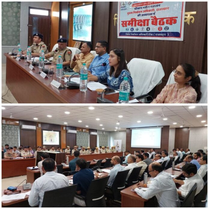 उन्होंने शुक्रवार को जिला परिषद सभागार टोंक में देवली-उनियारा विधानसभा उपचुनाव की तैयारियों की समीक्षा बैठक में चुनाव निष्पक्ष, शांतिपूर्ण एवं भयमुक्त संपन्न कराने के अधिकारियों को निर्देश दिए। मुख्य निर्वाचन अधिकारी ने उपचुनाव के लिए की गई तैयारियों की समीक्षा करते हुए जिले की अन्य जिलों से लगती हुई सीमाओं पर बनाए गए नाकों, एफएसटी, एसएसटी, मतदान केंद्रों पर आधारभूत सुविधाएं, होम वोटिंग, वेब कास्टिंग, सी-विजिल एप, मतदाता अवेयरनेस गतिविधियां, एनफोर्समेंट एजेंसियां, ईवीएम प्रोटोकॉल, वोटर स्लिप का शत-प्रतिशत वितरण, 12 वैकल्पिक दस्तावेजों की आईईसी को लेकर आवश्यक दिशा-निर्देश दिए। जिला निर्वाचन अधिकारी डॉ. सौम्या झा एवं पुलिस अधीक्षक विकास सांगवान ने पीपीटी के माध्यम से उपचुनाव के लिए की गई व्यवस्थाओं एवं तैयारियों का प्रेजेंटेशन दिया।