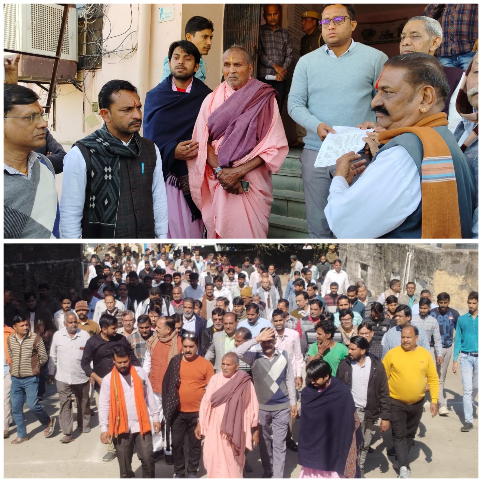 ज्ञापन में बताया कि गौमाता के संरक्षण के लिए संचालित गोपाल गौशाला के उपयोग में आ रही भूमि पर षडयंत्रपूर्वक भूमाफिया का कब्जा बताकर तोड़फोड़ की गई। ऐसे अधिकारियों के विरूद्ध कार्रवाई करने व उन्हें निलंबित करने के अलावा गौशाला के लिए भूमि आवंटन की मांग की गई। करीब 25 वर्षों से बनास नदी के तट के समीप चरागाह भूमि, जो कि गायों के ठहराव व संरक्षण के लिए समाज के सहयोग से श्रीगोपाल गोशाला समिति द्वारा गोशाला संचालित की जा रही है। यह गोशाला राज्य सरकार के निर्धारित नियमों के तहत पंजीकृत है। इस दौरान महंत ललितराम, ईश्वरराम महाराज, गोशाला संरक्षक बालकृष्ण नागौरी, रामस्वरूप सोनी, शशिकांत पत्रिया ने संबोधित किया। इस दौरान शहर बंद का मिला-जुला असर दिखा।