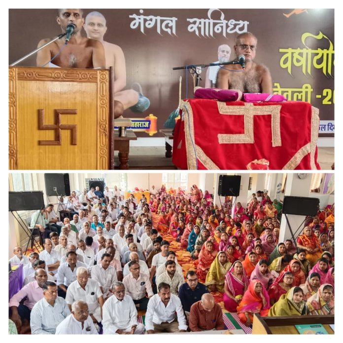 इसके बाद क्षुल्लक विधेय सागर ने गुरुदेव के भजन “शिष्य भूल गए रे हरद्वार, मगर गुरुद्वार नहीं भूले” से मंगलाचरण प्रस्तुत किया। मुनि ने गुरु पूर्णिमा महोत्सव का महत्व बताते हुए कहा कि पंचमकाल में साधना आसान नहीं है और जीवन में गुरु का होना आवश्यक है। उन्होंने कहा कि अवसर्पणी काल में दिगम्बरचर्या के धारी मुनिराज का दर्शन ही किसी अतिशय से कम नहीं है और दिगम्बर साधू के समक्ष गुरु मानकर अपने जीवन को सदमार्ग पर चलाना अनन्त पुण्यों के संचय से ही सम्भव है। कार्यक्रम में समाज अध्यक्ष बंशीलाल सर्राफ, संजय पापड़ीवाल, मुकेश जैन, ज्ञानचंद, प्रशांत, आशु, सुलोचना, सरोज सहित सकल जैन समाज के श्रावकों ने हिस्सा लिया।