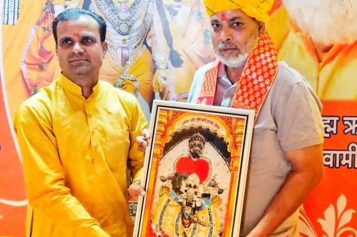 Deoli News 10 अप्रैल (दैनिक ब्यूरो नेटवर्क) देवली में सांवरिया सेठ मंदिर निर्माण का संकल्प लेने वाले रामसिंह शक्तावत का पं मुकेश गौतम द्वारा माल्यार्पण कर स्वागत किया गया।