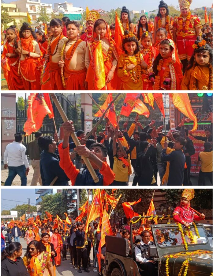 इस दौरान डेढ़ दर्जन से अधिक नन्हे बच्चे राम, लक्ष्मण व हनुमानजी की पोशाक में भगवा ध्वज लेकर चल रहे थे। कड़ाके की ठंड के बीच नन्हे बच्चों में भी श्रीराम नाम को लेकर उत्साह था। जिन्हें देखकर लोग प्रशंसा कर रहे थे भगवा रैली का पटेल नगर स्थित काला हत्था में समापन हुआ। इस मौके पर जितेंद्र सिंह चौधरी ने कहा कि राम महोत्सव पर सभी विद्यार्थी अपने घरों पर भगवा ध्वज लहराए तथा दीपक जलाएं। उन्होंने देवली में हो रहे कार्यक्रम की रुपरेखा बताई। इस दौरान संजय सिंहल, कृष्ण गोपाल शर्मा, अशोक दुबे, लोकेंद्र सिंह चौधरी, विनोद धर्मानी, शिवराज मीणा, मयूर स्कूल के निदेशक अजय मेवाड़ा, सत्यनारायण साहू, जसवंत सिंह चौहान, प्रहलाद साहू समेत कई लोग साथ थे। उक्त भगवा रैली में मयूर स्कूल, भारतीय शिक्षा सदन, सिटी प्राइड, लोटस स्कूल, आइडियल किड्स स्कूल अग्रसेन स्कूल के बच्चे शामिल थे।