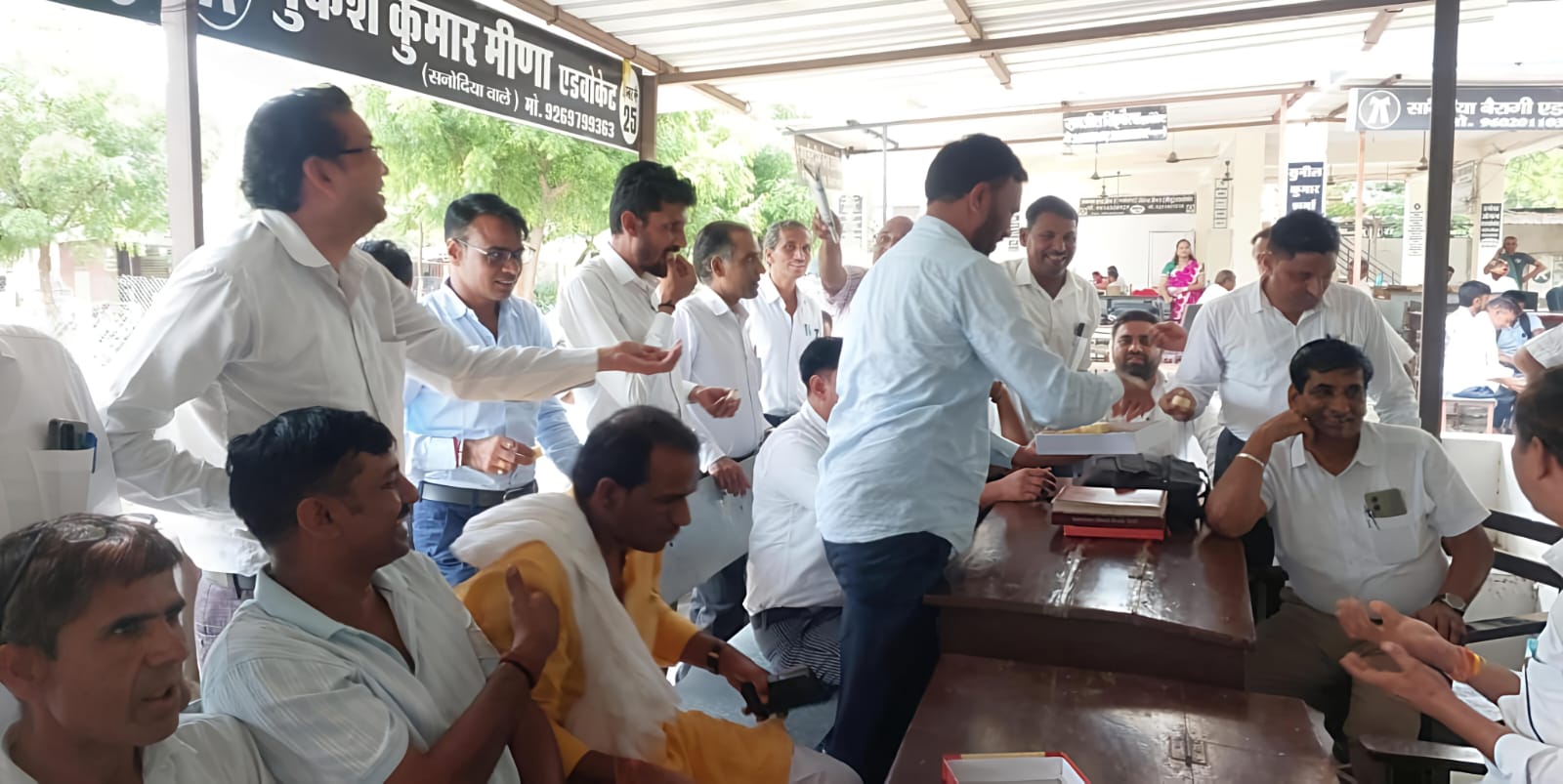 Deoli News 21 जुलाई (दैनिक ब्यूरो नेटवर्क) देवली उपखंड अधिकारी का ट्रांसफर होने पर सोमवार को देवली कोर्ट परिसर में अधिवक्ताओं ने मिठाई बांटकर खुशी जताई।