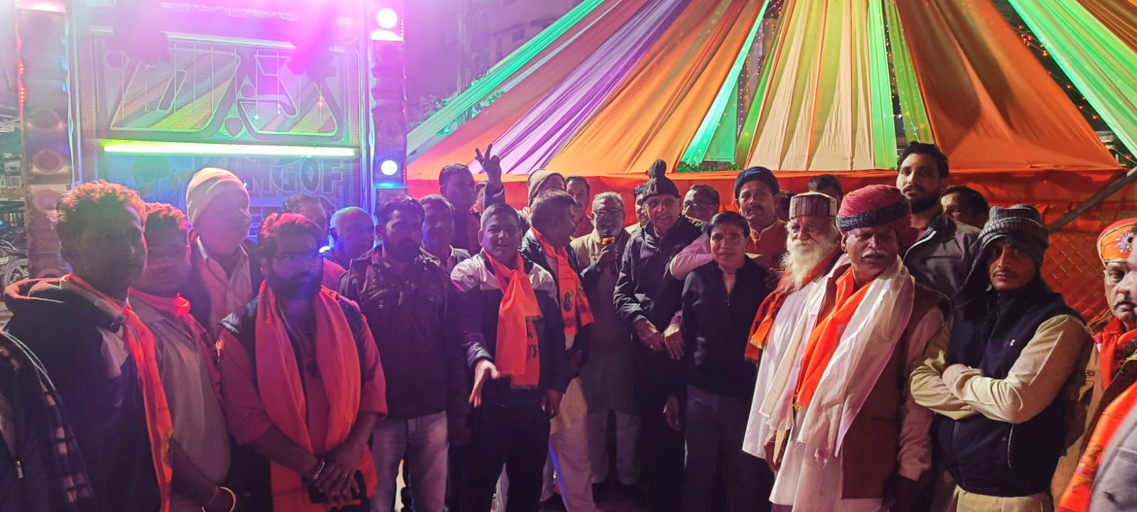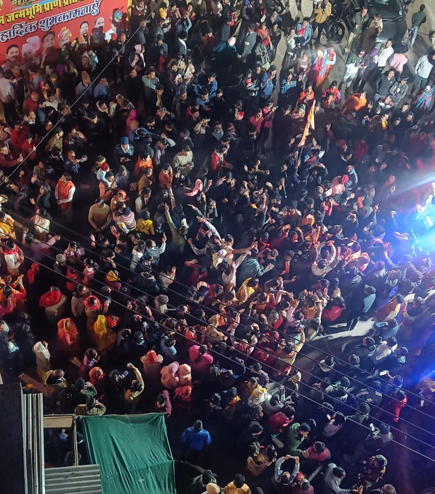 वही आतिशबाजी भी की गई। इस मौके पर भगवान श्रीराम की स्तुति गाई गई। वही हजारों लोगों ने सामूहिक हनुमान चालीसा का पठन किया गया। समूचा माहौल राममय हो गया। राम, लक्ष्मण, जानकी जय बोलो, हनुमान की जय श्री राम के नारे गूंज उठे। इस मौके पर “कसम राम की खाते हैं, मंदिर वहीं बनाएंगे, भजन पर युवा व महिलाएं झूम उठी। इसी तरह “मेरे झोपड़ी के भाग आज खुल जाएंगे”, छम छम नाचे वीर हनुमाना भजन पर युवा जमकर झूमे। रामभक्तों ने जमकर नृत्य किया। स्थिति यह थी कि नाचने से कोई पीछे हटने को तैयार नहीं हुआ। इससे पहले पटेल नगर से जितेंद्र सिंह चौधरी समेत की अगुवाई में यात्रा निकाली, जो मुख्य बाजार से होते हैं बावड़ी बालाजी मंदिर परिसर पहुंची।