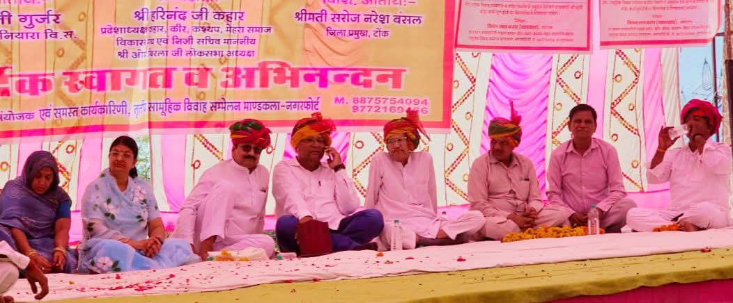 Deoli News 6 जून (दैनिक ब्यूरो नेटवर्क) क्षेत्र के माण्डकलां में गुरुवार को कहार कीर-केवट-कश्यप-मेहरा स्वजातीय समाज के सामूहिक विवाह सम्मेलन में 29 जोड़ों का विवाह और प्रतिभावान छात्र एवं छात्राओं का सम्मान समारोह आयोजित हुआ।