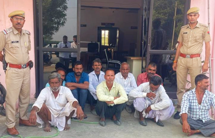 थाना प्रभारी नासिरदा हरिमन मीणा ने बताया कि पुलिस ने राजभंवर पुत्र लक्ष्मण सिंह राजपुत निवासी दलवासा, राधेश्याम पुत्र लादुराम धाकड निवासी तितरिया, भेरुलाल पुत्र कानाराम धाकड निवासी रतनपुरा, सीताराम पुत्र रामकिशन धाकड निवासी तितरिया, किशनलाल पुत्र श्योजी गुर्जर निवासी तितरिया कालोनी, भुवानाराम पुत्र बरदाराम गुर्जर निवासी नई कालोनी थांवला, धर्मराज पुत्र रामलाल गुर्जर निवासी नई काँलोनी माताजी का थावला, नोलख सिंह पुत्र रामा सांसी निवासी नासिरदा, सुरेश मीणा पुत्र जगदीश मीणा निवासी कल्याणा का थावला थाना नासिरदा को गिरफ्तार किया है।