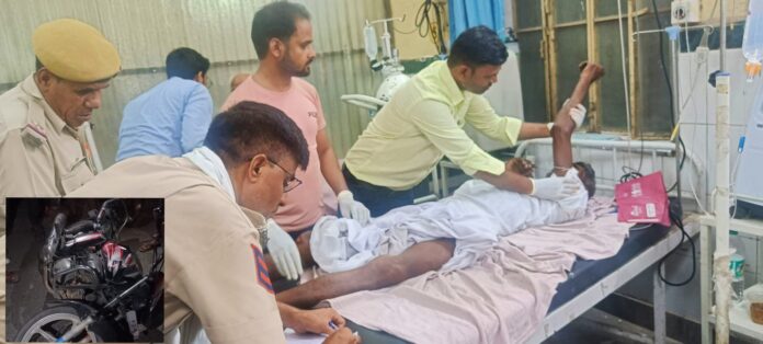 घायलों को किया रेफर, कार ने मारी बाइक को टक्कर