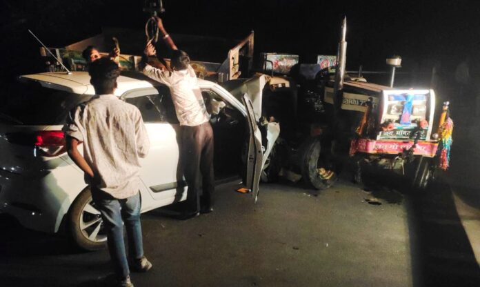 HomeAccident Newsकार ट्रैक्टर की टक्कर, तीन गंभीर घायल