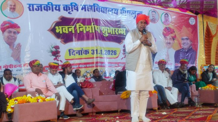 Jahazpur News 1 फरवरी (मोहम्मद आज़ाद नेब) राजकीय कृषि महाविद्यालय जहाजपुर भवन के शिलान्यास कार्यक्रम में शनिवार को कृषि मंत्री डॉ. किरोड़ी लाल मीणा नहीं आए। मंत्री का दौरा अंतिम समय पर निरस्त होने के बाद विधायक गोपीचंद मीणा ने स्वयं कृषि महाविद्यालय भवन का भूमि पूजन एवं शिलान्यास किया।