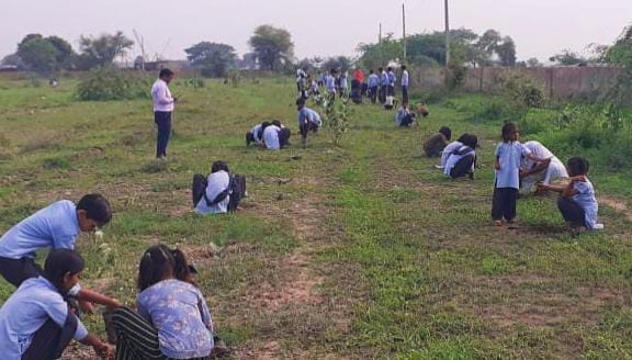 खेल मैदान में पौधे लगाए