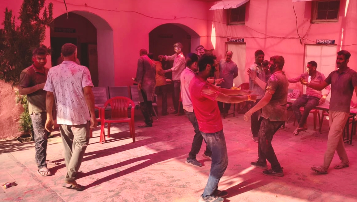 पुलिस अधिकारियों ने भी रैंक भूल कर फिल्मी गीतों की धुन पर पुलिसकर्मियों के साथ अपनी थकान मिटाते हुए जमकर ठुमके लगाए और रंगों के उत्सव का आनंद लिया। परंपरा के अनुसार पुलिस महकमे में धूलंडी के अगले दिन होली मनाई जाती है, जिसे इस बार भी बड़े हर्षोल्लास के साथ निभाया गया।