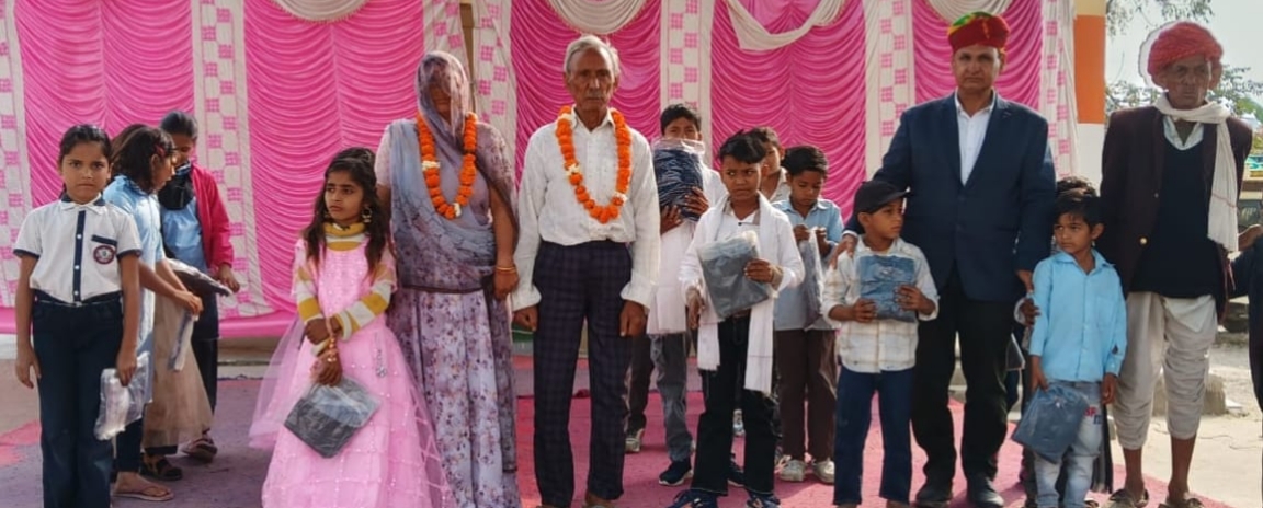विद्यालय प्रधानाचार्य दिनेश कुमार शर्मा ने बताया कि गणतंत्र दिवस समारोह में बंशीलाल मीणा ने पत्नी रामप्यारी देवी की स्मृति में कक्षा एक से 5 तक के सभी 30 विद्यार्थियों को ऊनी जर्सी वितरित की। कार्यक्रम के दौरान शंकर लाल मीणा, प्रेरणा मीणा, दयाल मीणा, विद्यालय के शिक्षक, एसएमसी अध्यक्ष, अभिभावक एवं ग्रामीण उपस्थित थे। वहीं अभिवादन स्वरूप विद्यालय की ओर से भी दानदाता परिवार का माल्यार्पण कर अभिनंदन किया गया।