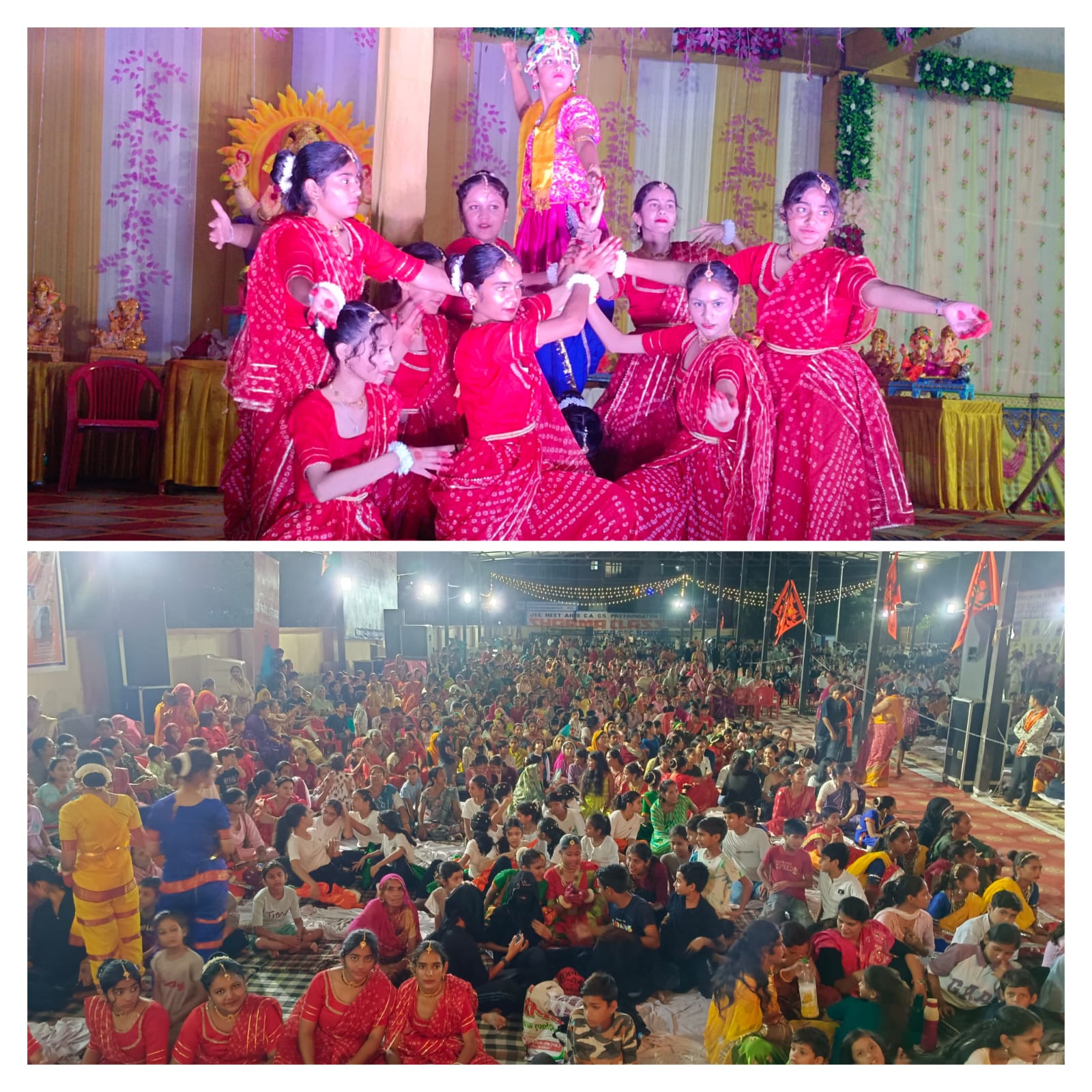 मानव धर्म बहु दिव्यांगता विद्यालय के छात्रों ने ‘ओ माय फ्रेंड गणेशा’ पर सामूहिक नृत्य किया। जेके एंड जिल स्कूल और आदर्श इंडियन पब्लिक स्कूल के विद्यार्थियों ने गणेश वंदना और देशभक्ति गीत प्रस्तुत किए। आर्यन मुकुल पब्लिक स्कूल, अग्रसेन शिक्षा सदन और मयूर इंटरनेशनल स्कूल के बच्चों ने धार्मिक कार्यक्रम पेश किए। संस्कृति पब्लिक स्कूल की नेहा और उनकी टीम ने धार्मिक और देशभक्ति गीतों पर समूह नृत्य किया। ब्राइट माइंड स्कूल की निष्ठा और उनके साथियों ने एक विशेष नाटक के जरिए शराब, सिगरेट, पान, तंबाकू और ड्रग्स के दुष्प्रभावों को दर्शाया।