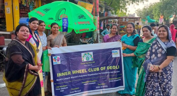 Deoli News 11 मई (दैनिक ब्यूरो नेटवर्क) इनर व्हील क्लब देवली की ओर से अक्षय तृतीया के मौके पर शुक्रवार को शहर में खुले आसमान के नीचे दुकान लगाने वाले लोगों को नि:शुल्क छतरी वितरित की गई।