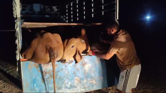 Deoli News 25 अप्रैल (दैनिक ब्यूरो नेटवर्क) राष्ट्रीय राजमार्ग जयपुर-कोटा से एमपी की ओर जा रही गोवंश से भरी एक पिकअप को गोरक्षा दल, मां बीजासन गौशाला देवली व हनुमान नगर पुलिस ने संयुक्त रूप से कार्रवाई कर बीती रात पकड़ा है। वहीं पकड़े गए नंदी को मुक्त कराया।