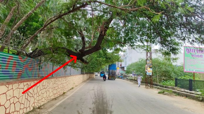 Deoli News 15 अगस्त (दैनिक ब्यूरो नेटवर्क) शहर में चर्च रोड पर सीआईएसएफ के मुख्य द्वार से राजकीय महाविद्यालय जाने वाले प्रमुख मार्ग पर बल परिसर की दीवार से सटा एक पेड़ सड़क की ओर झुक गया है।