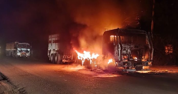 Deoli News 13 अक्टूबर (दैनिक ब्यूरो नेटवर्क) देवली से केकड़ी मार्ग पर मोरला चौराहे से आगे रविवार देर रात एक चलते हुए ट्रेलर में अचानक भीषण आग लग गई।