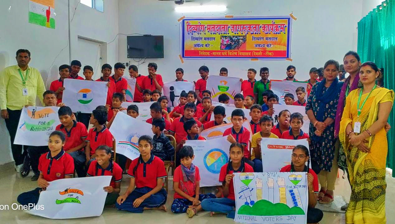 प्राचार्य महेश कुमार शर्मा ने बताया कि मानसिक दिव्यांग व मूक बधिर छात्र-छात्राओं ने 25 नवम्बर को सभी दिव्यागों को मतदान करने का संदेश दिया। संस्था निदेशक रणवीर सिंह चौहान, कार्यालय अधीक्षक।गजेन्द्र सिंह मीणा, लेखाकार सत्यनारायण सैन, कोर्स कोर्डिनेटर अंशु शर्मा, जगत