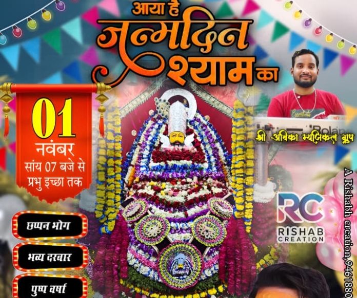 यह आयोजन एक नवम्बर शाम 7 बजे से प्रभु इच्छा तक होगा। भजन संध्या में गायक कलाकार नरेश डिग्गा (वृंदावन), राहुल अग्रवाल तथा नितिन मंगल अपनी भक्तिमय प्रस्तुतियां देंगे। कार्यक्रम में अंबिका म्यूजिकल ग्रुप की प्रस्तुति रहेगी। इस दौरान छप्पन भोग, भव्य दरबार और पुष्प वर्षा सहित आकर्षक आयोजन भी किए जाएंगे। आयोजन समिति ने सभी श्याम व प्रभु भक्तों से इस भक्ति संध्या का लाभ लेने की बात कही।