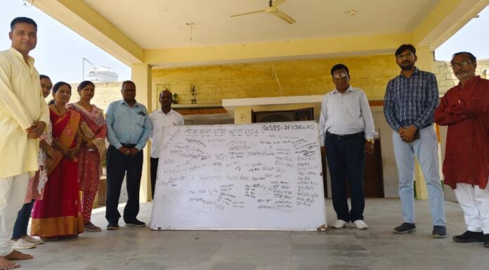 राऊमावि देवडावास में शनिवार को स्वीप कार्यक्रम के तहत छात्र छात्राओं ग्रामीणों व अभिभावको ने हस्ताक्षर कर लोकसभा चुनाव के तहत अपने हस्ताक्षर कर मतदान का समर्थन किया। विद्यालय स्टाफ ने भी हस्ताक्षर करके चुनाव के प्रति लोगों को जागरूक किया।