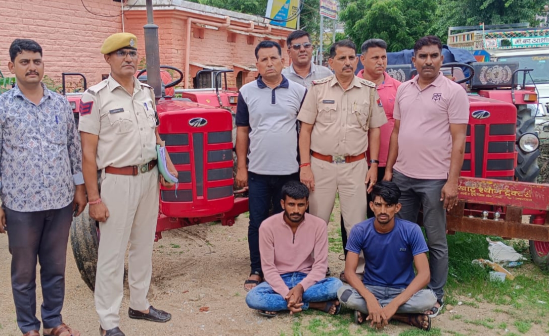 इसमें बताया कि गत 27 मई को महेश नर्सिंग होम के पास स्थित उनके किराए के मकान के सामने खड़े ट्रैक्टर को अज्ञात व्यक्ति रात सवा एक बजे चुराकर ले गया। पुलिस ने पीड़िता की रिपोर्ट पर मामला दर्ज कर पुलिस उप अधीक्षक रामसिंह समेत उच्च अधिकारियों के मार्गदर्शन अनुसार टीम गठित की और चोरों की तलाश शुरू की। थाना प्रभारी ने बताया कि इसके लिए रोड मैप तैयार किया और सूचनाओं व इनपुट एकत्र कर संदिग्ध आरोपियों को हिरासत में लिया गया। जिनसे पूछताछ पर उन्होंने ट्रैक्टर चोरी की वारदातें करना स्वीकार किया। इनमें आरोपियों ने टोंक में भी एक ट्रैक्टर चोरी की वारदात करना स्वीकार किया है। दोनों अभियुक्त के पास से पुलिस ने चुराए दो ट्रैक्टर बरामद किए हैं।