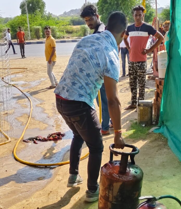 सूचना पर नगरपालिका की दमकल ने पहुंचकर लोगों के सहयोग से आग बुझाई। दमकल केंद्र की सूचना के मुताबिक यह आग शाम 4 बजे एनएचएआई 52 स्थित लकी ढाबा रेस्टोरेंट पर लगी। इस दौरान ढाबा कर्मचारी गैस पर काम कर रहा था। इस दौरान सिलेंडर ने आग पकड़ ली। इससे ढाबा आसपास के क्षेत्र में अफरा तफरी मच गई। वहीं समीप के महिंद्रा शोरूम के कर्मचारियों ने दमकल केंद्र को सूचना दी। सूचना पर पहुंची फायर ब्रिगेड ने लोगों के सहयोग से आग पर काबू पाया। समय रहते आग बुझाए जाने से किसी तरह की कोई हानि व नुकसान नहीं हुआ। लेकिन एक व्यक्ति थोड़ा झुलसा है। इस दौरान दमकलकर्मी प्रद्युमन सिंह, प्रदीप सिंह, रामहरि मीणा समेत मौजूद थे।
