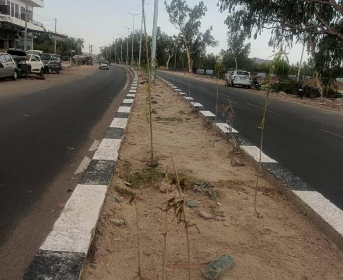 क्षेत्रवासियों ने बताया कि शहर में गत कुछ माह पहले शहर के पेट्रोल पंप से लेकर अजमेर बाईपास जोधाणा होटल तक फोर लाइन सड़क बनाई गई। जहां दोनों ओर नाले बनाकर सड़क का निर्माण किया गया। वहीं सड़क के बीच मार्ग विभाजक डिवाइडर बनाकर इसमें सौंदर्यकरण के लिए पौधे लगाए गए। वहीं डिवाइडर के बीच विद्युत पोल भी लगाए गए। लेकिन देखरेख के अभाव में यहां लगाए गए पौधे भीषण गर्मी की भेंट चढ़ रहे हैं।