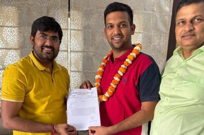 Deoli News 3 अप्रैल (दैनिक ब्यूरो नेटवर्क) भाजपा युवा मोर्चा के अध्यक्ष मनोज शर्मा ने देवली के पटेल नगर निवासी दक्ष जैन को संगठन में महामंत्री मनोनीत किया है।