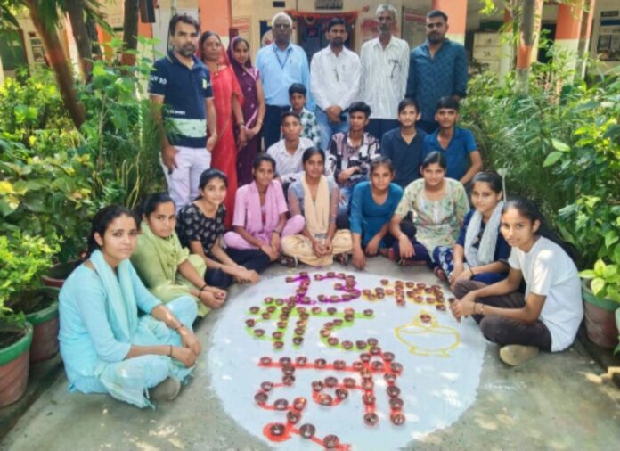 Deoli News 29 अक्टूबर (दैनिक ब्यूरो नेटवर्क) पीएम श्री राजकीय उच्च माध्यमिक विद्यालय दूनी में मंगलवार को दीप जलाकर मतदान करने का संदेश दिया।