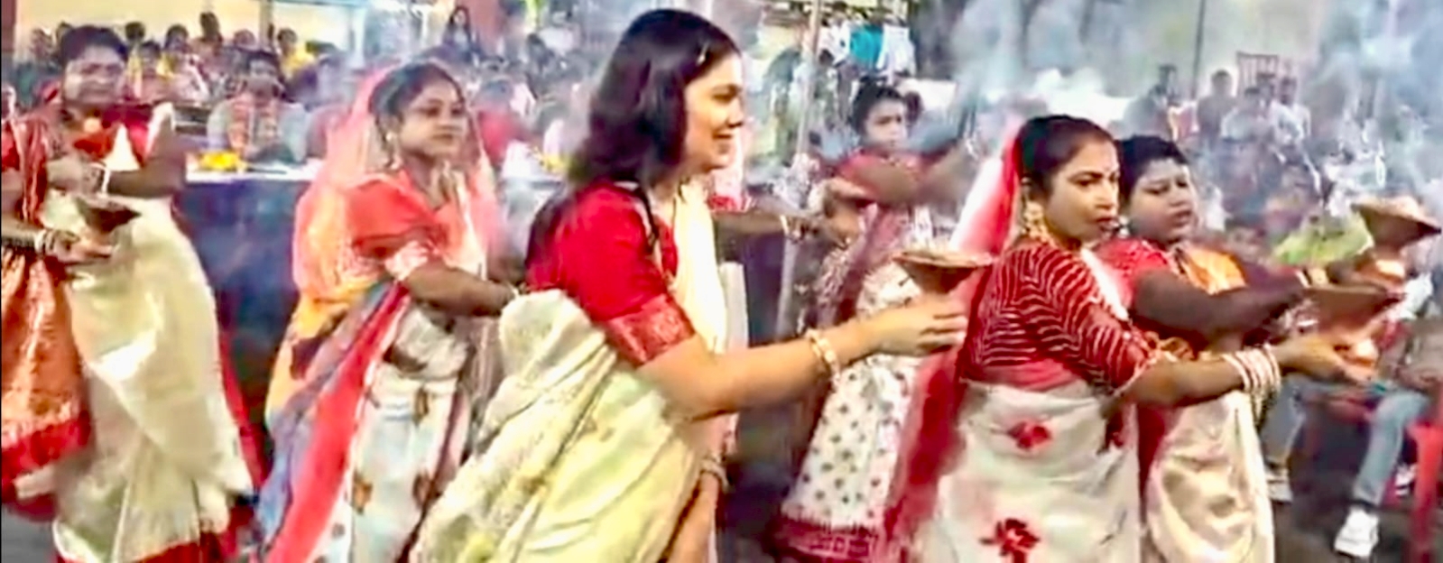 बुधवार दोपहर मंदिर परिसर में विशेष हवन का आयोजन हुआ। इस दौरान बंगाली समाज के महिला-पुरुषों ने अपने परिवार की सुख-समृद्धि और बच्चों के उज्ज्वल भविष्य की कामना करते हुए आहुतियां अर्पित की। बंगाली समाज की महिलाएं पारंपरिक परिधानों में माता की आरती कर रही हैं। ढाक-ढोल की थाप और शंखध्वनि के बीच आरती का दृश्य भक्तिमय वातावरण बना रहा। बड़ी संख्या में श्रद्धालु पूजा स्थल पर पहुंचकर माता के दर्शन कर आशीर्वाद ले रहे हैं।