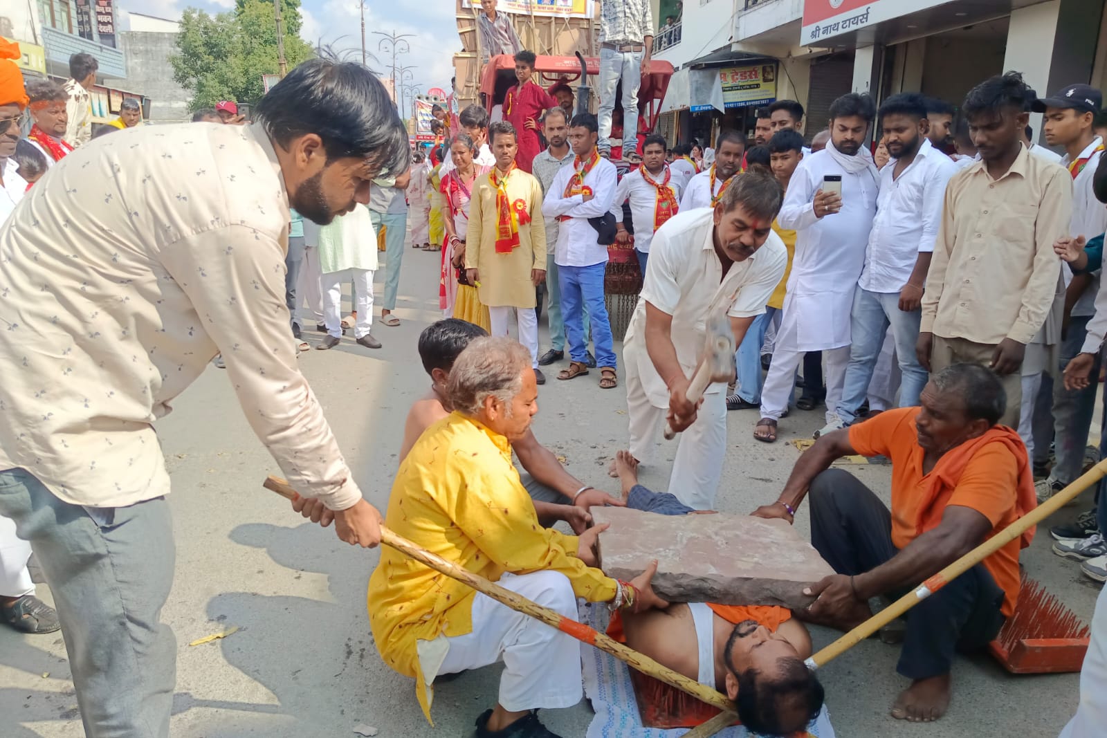 शोभायात्रा में पवनसुत हनुमान अखाड़े के पहलवानों ने सत्यनारायण साहू और मदन ग्वाला के नेतृत्व में पट्टेबाजी, करतब और व्यायाम का प्रदर्शन किया। वहीं बंगाली समाज के महिला-पुरुष नाचते-गाते और माता के जयकारे लगाते हुए शामिल हुए। शाम को यात्रा बोयड़ा गांव स्थित बनास नदी तट पर पहुंची, जहां विधि-विधान से पूजा-अर्चना के बाद प्रतिमा का विसर्जन किया गया। इसी तरह नगर पालिका मंडल के कार्यक्रम की प्रतिमा भी विसर्जित की गई।