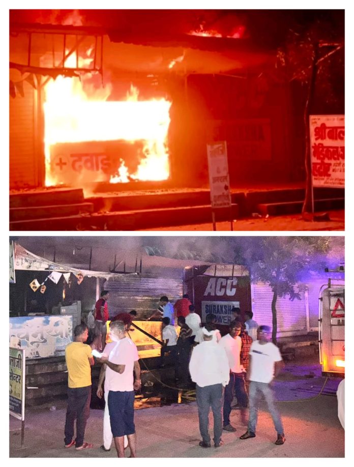 Deoli News 8 अगस्त (दैनिक ब्यूरो नेटवर्क) शहर के राजकीय चिकित्सालय के सामने स्थित बालाजी मेडिकल स्टोर में शुक्रवार अल सवेरे 3 बजे अचानक आग लग गई। पंचायत समिति देवली की दुकानों में संचालित इस मेडिकल स्टोर में आग लगने से क्षेत्र में हड़कंप मच गया।
