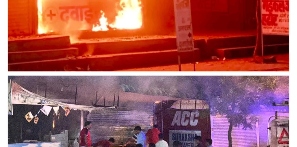 देवली : आग की लपटों में जलकर राख हुआ मेडिकल स्टोर