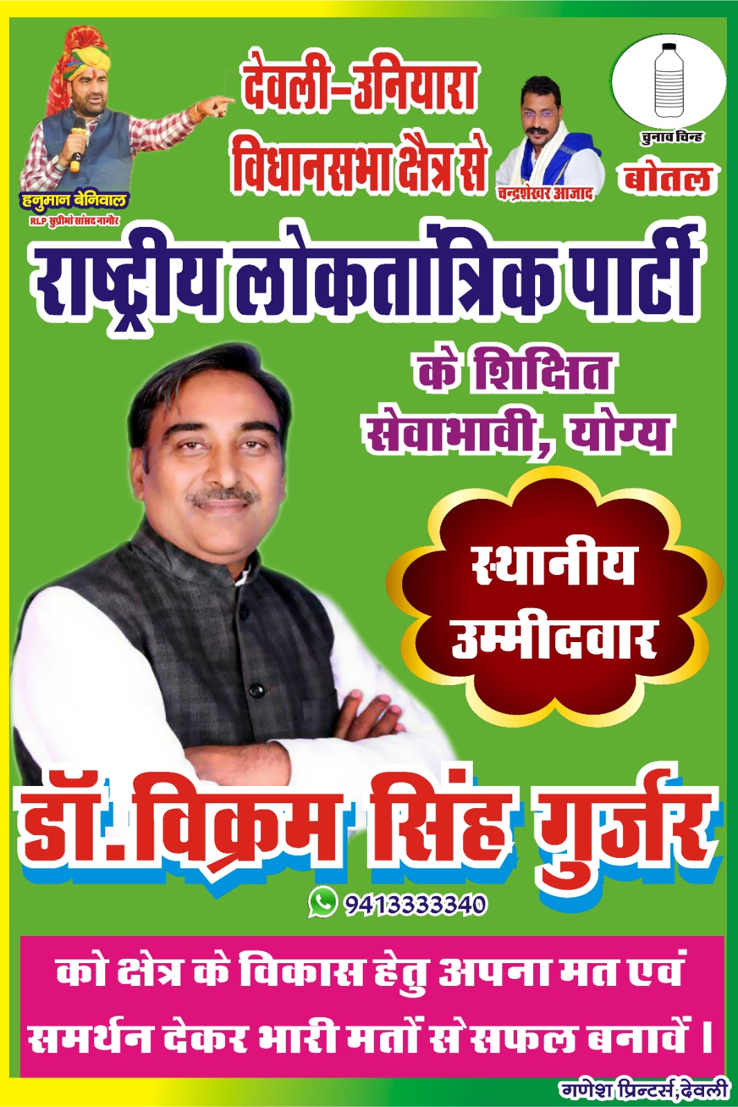 जबकि कांग्रेस ने पायलट गुट के विधायक हरीश चंद्र मीणा पर दांव खेला है। वहीं कांग्रेस से बागी हुए विक्रम सिंह गुर्जर आरएलपी से अपनी ताल ठोक रहे है। इसी के साथ देवली-उनियारा विधानसभा में कुल 14 प्रत्याशी मैदान में है। इधर, मतदान केन्द्रों के लिए पोलिंग पार्टियों अपने गंतव्य पर पहुंच चुकी है। जानकारी के अनुसार सभी मतदान केन्द्रों पर छाया पानी व दिव्यांग मतदाताओं के लिए व्हीलचेयर की व्यवस्था रहेगी। इसके अलावा स्काउट सदस्य भी मौजूद रहेंगे। उल्लेखनीय है कि उपखंड में 164 बूथ बनाए गए हैं। इनमें दो सहायक मतदान केंद्र है। वही 175 मतदान केन्द्रों पर वेब कास्टिंग होगा।
