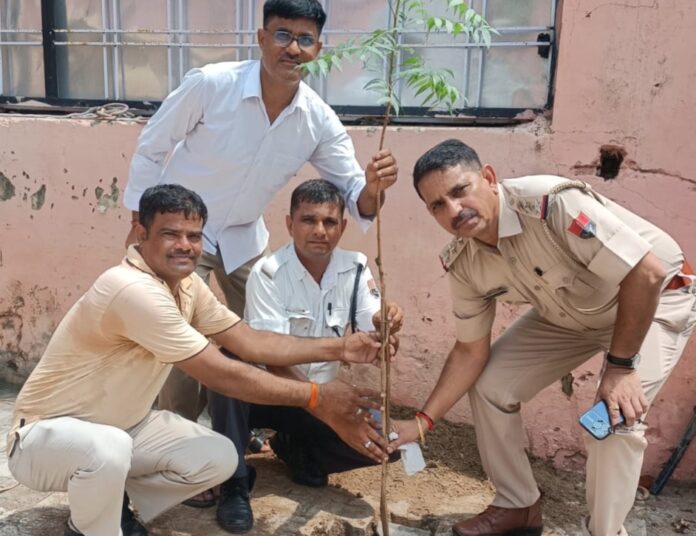 इस दौरान थाना परिसर के मुख्य द्वार के समीप नीम का पौधा लगाकर उसकी सुरक्षा के प्रबंध किए गए। इस दौरान पुलिस हेड कांस्टेबल संदीप यादव, रामेश्वर लाल, यातायात पुलिसकर्मी ओमप्रकाश समेत मौजूद थे। पुलिसकर्मियों ने बताया कि अब बारिश के साथ और भी पौधारोपण किए जाएंगे।