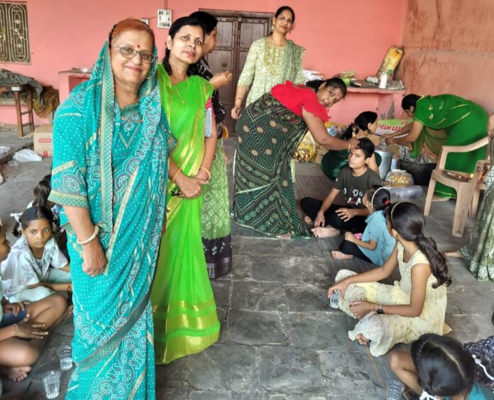 नवरात्र में माता स्वरूपा कन्याओं और भैरव स्वरूप बालकों को भोजन कराकर मातारानी की आराधना की जाती है। इसे लेकर बगीची के बालाजी परिसर में 51 कन्याओं को भोजन कराया गया और साथ ही आसपास की बस्तियों के बालक बालिकाओं को भी भोजन करवाया गया। अध्यक्ष नीतू मंगल ने बताया कि कार्यक्रम की शुरुआत माता रानी की पूजा, भजन और सामूहिक आरती के साथ किया गया। वहीं कन्या पूजन किया गया और सभी कन्याओं को भोजन करवाकर उपहार दिए गए। इसके बाद आसपास बस्ती में जाकर बच्चों को खाना भी खिलाया गया। मंदिर में चल रही अखण्ड रामायण पाठ में भी शाखा द्वारा सहयोग दिया गया।