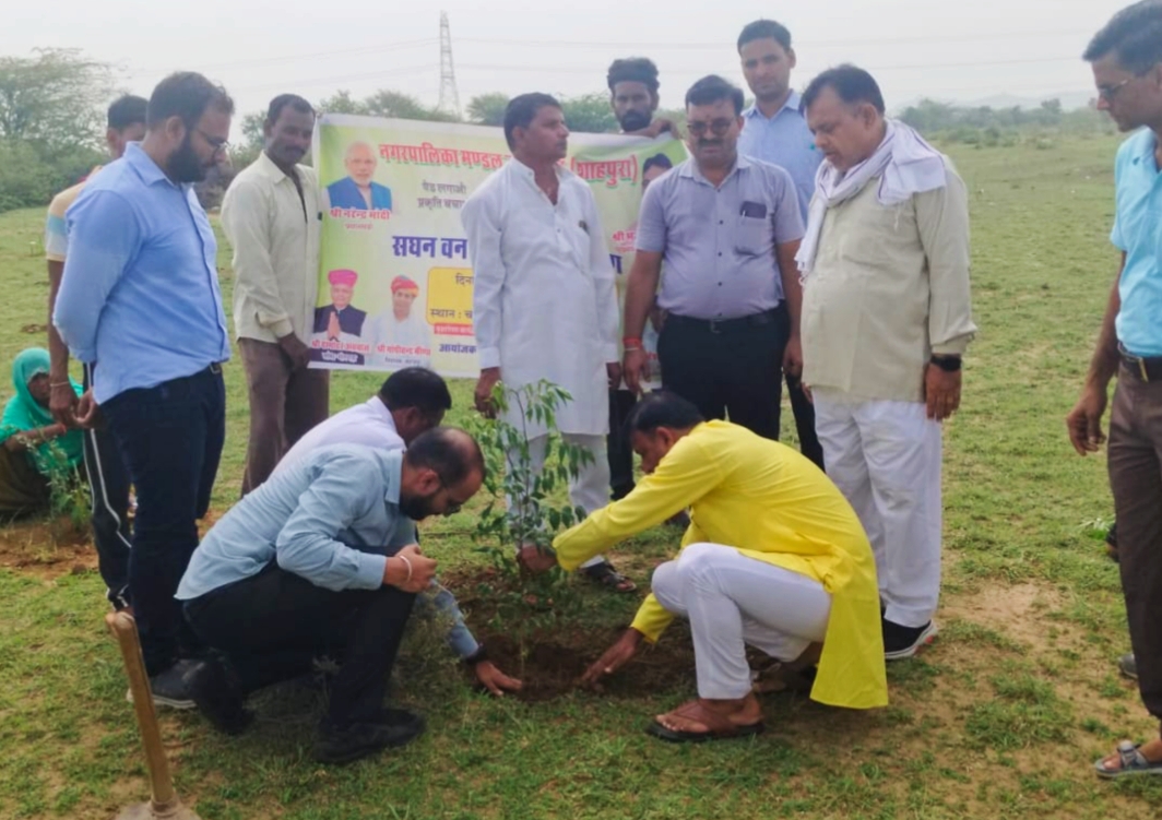 Jahazpur News 7 जुलाई (आज़ाद नेब) जहाजपुर नगर पालिका क्षेत्र को हरित बनाने के उद्देश्य से सोमवार को पालिका की आरक्षित भूमि पर बड़ी संख्या में पौधारोपण किया गया। इस दौरान नीम का पौधा लगाकर पालिका चेयरमैन नरेश मीणा ने इस अभियान की शुरुआत की।
