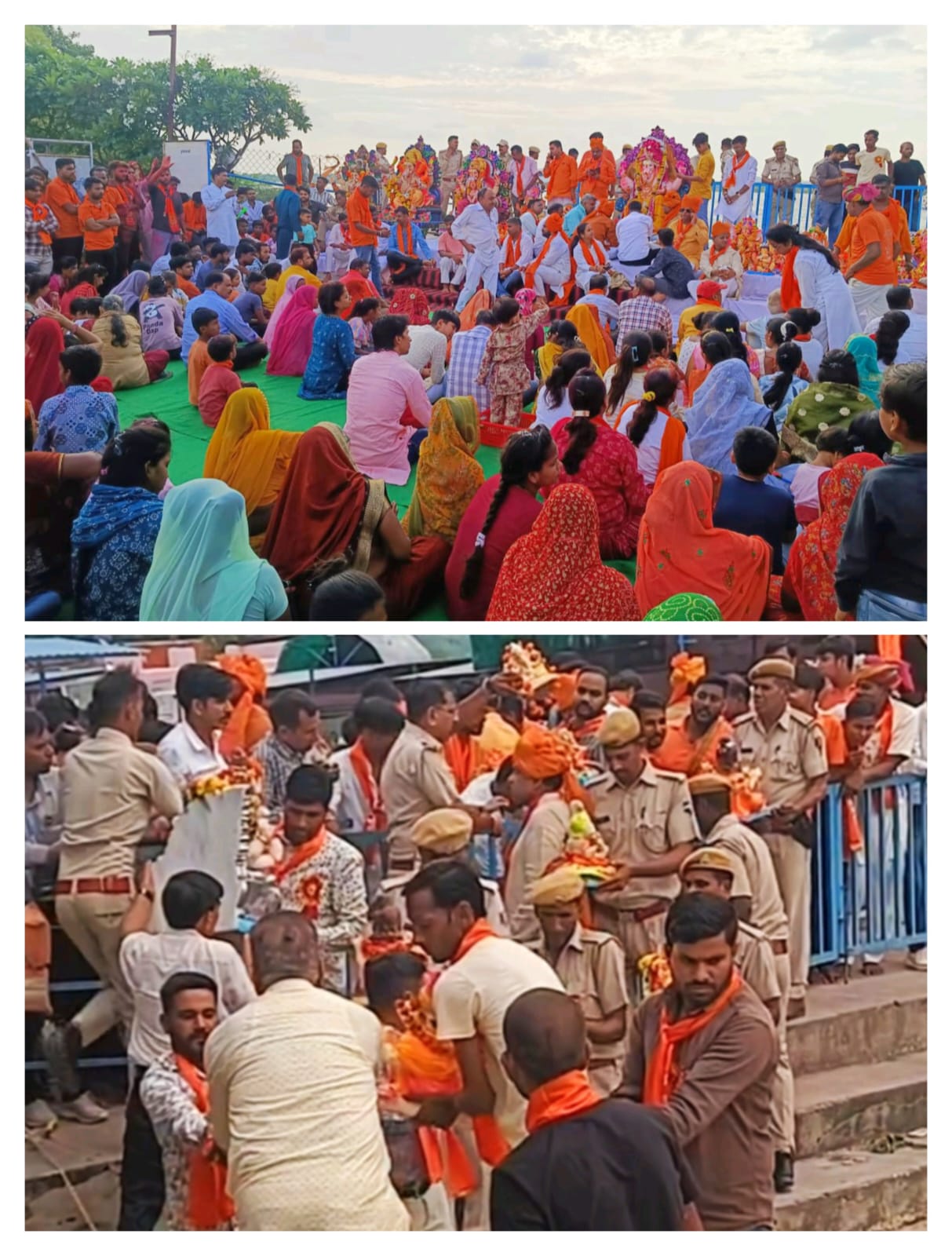 Deoli News 17 सितंबर (दैनिक ब्यूरो नेटवर्क) विश्व हिंदू परिषद, बजरंग दल और गणेश महोत्सव समिति के तत्वावधान में चल रहे 10 दिवसीय गणेश महोत्सव का मंगलवार को समापन हुआ। इस मौके पर देवली में भव्य शोभायात्रा निकाली गई।शोभायात्रा में गणपति बप्पा मोरया, अगले बरस तू जल्दी आ, के नारों के बीच शहर के पास बोरडा स्थित बनास नदी के किनारे पर गणपति प्रतिमाओं का विसर्जन किया गया।