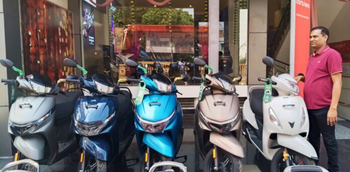 शोरूम संचालक बालकिशन मालू ने बताया त्योहार को लेकर एक्सचेंज ऑफर्स फाइनेंस टीवीएस क्रेडिट पर 5000* तक का, टीवीएस अपाचे मॉडल पर 2500* तक का कैश डिस्काउंट, जूपिटर स्कूटर 110CC पर 4000 तक का कैश डिस्काउंट, टीवीएस स्पोर्ट एंड रेडॉन पर 2100* तक का कैश डिस्काउंट ऑफर्स दिया जा रहा है। इसके अलावा टीवीएस इलेक्ट्रिक स्कूटर आईक्यूब मॉडल पर 25000* तक का कैश बैक ऑफर्स दिए जा रहा है। इसी तरह बैंक क्रेडिट कार्ड पर भी 7500 रुपए तक का कैश बैक ऑफर्स चल रहा हैं। उन्होंने बताया कि टीवीएस के मॉडल मार्केट में धूम मचा रहे है। जिसके चलते अभी से धनतेरस व दीपावली की कस्टमर द्वारा बुकिंग शुरू हो गई। ग्राहक अपने मनपसंद कलर और मॉडल सीमित समय और स्टॉक रहने तक बुक करा सकते हैं, ताकि उन्हें ऑफर्स का लाभ मिल सके।