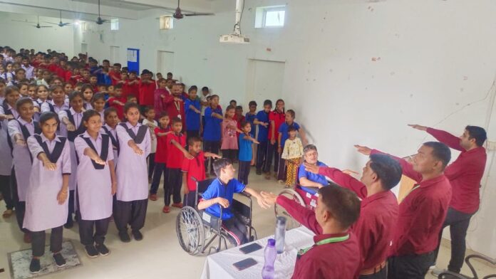 Deoli News 14 अगस्त (दैनिक ब्यूरो नेटवर्क) मानव धर्म बहु दिव्यांगता विद्यालय देवली में बुधवार को नशा मुक्ति भारत अभियान के तहत विकसित भारत का मंत्र, भारत हो नशे से स्वतंत्र की थीम पर शपथ ली गई।