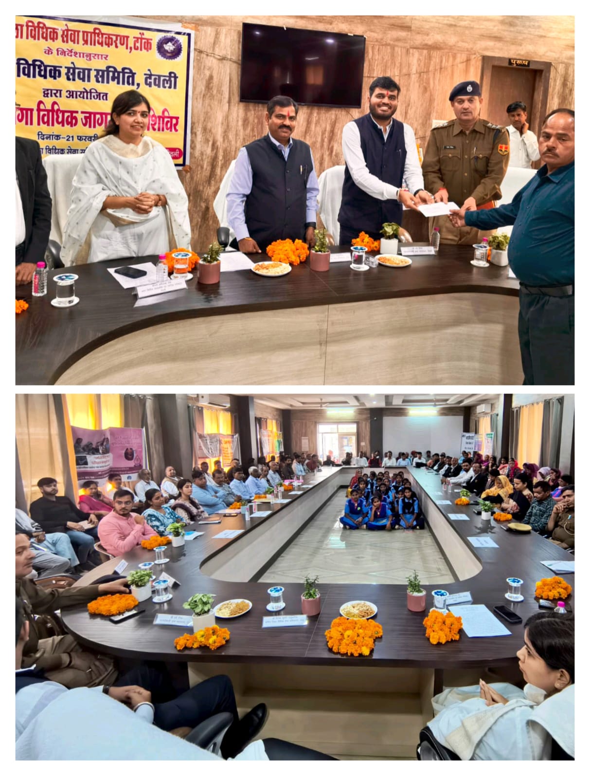 Deoli News 21 फरवरी (दैनिक ब्यूरो नेटवर्क) डोर स्टेप प्री-काउंसलिंग एवं नालसा मेगा विधिक सेवा शिविर का आयोजन शुक्रवार को नगर पालिका सभागार भवन में दिनेश कुमार जलुथरिया, सचिव जिला विधिक सेवा प्राधिकरण (अपर जिला एवं सेशन न्यायाधीश) टोंक की अध्यक्षता में हुआ।