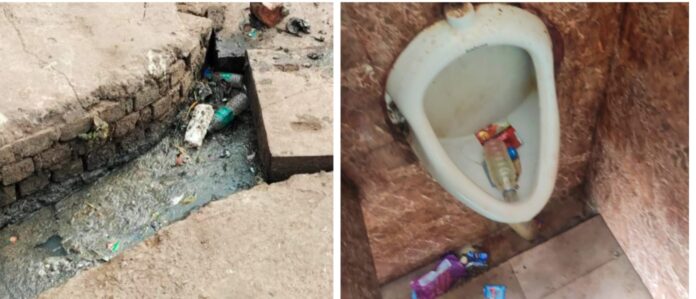 क्षेत्र के लोगों ने बताया कि यह नाला कीचड़, पॉलिथीन आदि से चौक हो चुका है। जिसकी वजह से पानी का बहाव थमा हुआ है। वही लगातार कीचड़ भरे रहने से दुर्गंध फैल रही है। यदि इसकी सफाई नहीं की गई तो पानी सड़क पर बहाने लगेगा। इसी तरह शहर के जहाजपुर चुंगी नाका स्थित सुलभ शौचालय की स्थिति भी खराब है। जहां यूरिनल पोट निकासी के अभाव में भरे पड़े हैं। वहीं गंदगी से आसपास यूरिनल की बदबू फैल रही है। यूरिनल पोट में शराब व पानी की बोतल बिक्री पड़ी है। लेकिन उनकी सफाई नहीं होने से लोगों को दिक्कत हो रही है। जिसे साफ करने की लोगों की मांग है।