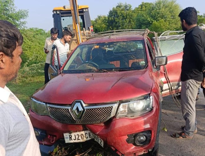 अचानक एक गाय के सड़क पर आ जाने से उन्होंने नियंत्रण खो दिया और उनकी कार खाई में जा गिरी। हादसे के बाद कार सवार दोनों जनों को खुशकिस्मती से किसी प्रकार की चोट नहीं आई। कार गिरने की आवाज सुनकर आसपास के ग्रामीण तुरंत मौके पर पहुंचे और दोनों को सुरक्षित बाहर निकाला। घटना के बाद, कार चालक ने खुद ही जेसीबी बुलाकर गाड़ी को खाई से निकलवाया और दोनों अपने गंतव्य के लिए रवाना हो गए। इस मामले में किसी तरह की पुलिस रिपोर्ट दर्ज नहीं की गई है। इस दौरान मौके पर ग्रामीणों की भीड़ जमा गई।