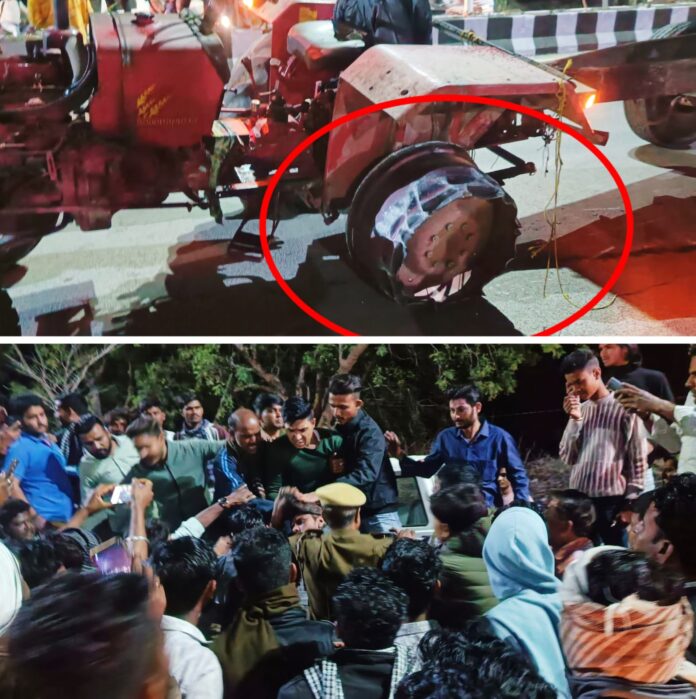 पीछा करने के दौरान ट्रैक्टर के बाई ओर के हिस्से का बड़ा टायर खुल गया। इसके बावजूद चालक स्टेपनी पर कई किलोमीटर तक ट्रैक्टर चलाता हुआ गया। दर्जनों युवाओं की भीड़ तथा पुलिस का भी चालक को कोई भय नहीं था। स्टेपनी पर ट्रैक्टर ट्राली चलने की वजह से सड़क पर काफी आवाज हो रही थी। इसकी वजह से भी आसपास के लोगों को पता लग गया। वहीं सड़क को भी नुकसान हुआ है। बाद में ट्रैक्टर चालक ने करीब 8:45 बजे होटल गोविंदा सैनी के सामने ट्रैक्टर रोका तथा डिवाइडर के दूसरी ओर पुलिस के पास भागने लगा।
