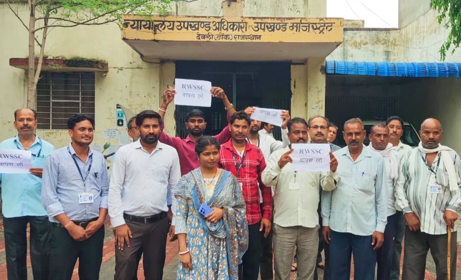 Deoli News 26 जुलाई (दैनिक ब्यूरो नेटवर्क) पीएचईडी के कार्यों को आरडब्लूएसएससी को हस्तांतरित किए जाने के विरोध में शुक्रवार को संयुक्त संघर्ष समिति जन स्वास्थ्य अभियांत्रिकी विभाग के कर्मचारियों ने मुख्यमंत्री के नाम देवली उपखंड अधिकारी को ज्ञापन दिया है।