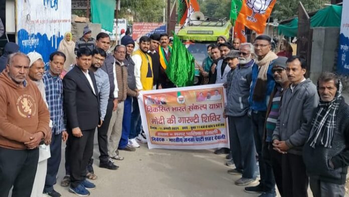 मंडल मंत्री सुनील सेठी ने बताया कि उक्त शिविर की लोगों को जानकारी देने के उद्देश्य से बुधवार को भाजपा शहर मंडल की ओर से प्रचार प्रसार वाहन लगाया गया। इस वाहन में लाउडस्पीकर के माध्यम से लोगों को जानकारी दी जाएगी। उक्त वाहन को मंडल अध्यक्ष राजेंद्र सिंह राणावत ने हरी झंडी दिखाकर रवाना किया, जो शहर में घूम-घूमकर लोगों को विकसित संकल्प यात्रा के उद्देश्य की जानकारी देगा। यह शिविर सुबह 11 से शाम 5 बजे तक आयोजित होगा। इसमें उज्ज्वला योजना, आवास योजना, विश्वकर्मा योजना समेत योजनाओं का पंजीकरण किया जाएगा। इस दौरान भाजपा नेता रणवीर सिंह चौहान, भाजयुमो अध्यक्ष मनोज शर्मा, नीरज जैन, भारत सिंह सोलंकी, राजीव गोयल, रजनीश, राजकुमार चंदेल, बंसीलाल मेघवंशी, महेश अग्रवाल, महेश दाधीच समेत कई नेता मौजूद थे।