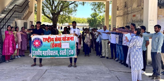 Deoli News 28 मार्च (दैनिक ब्यूरो नेटवर्क) राजकीय महाविद्यालय देवली में राजस्थान दिवस को लेकर शुक्रवार को एक शपथ समारोह आयोजित किया गया। जिसमें प्राचार्य डॉ. पूरणमल वर्मा के निर्देशन में राष्ट्रीय सेवा योजना की इकाई प्रथम एवं इकाई द्वितीय ने संयुक्त रूप से भाग लिया।