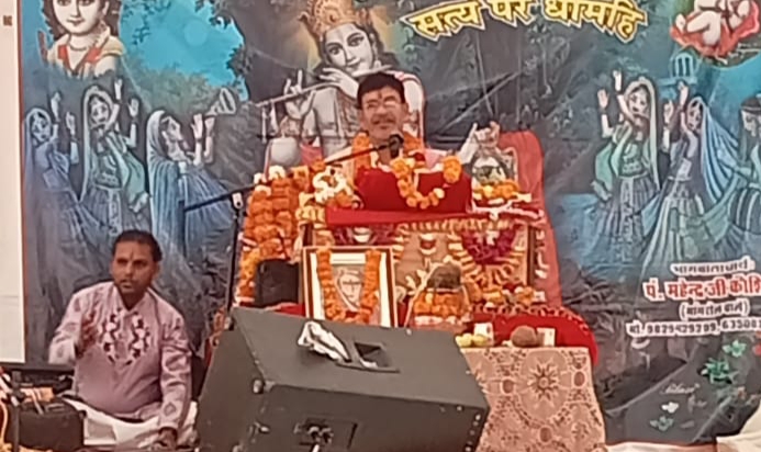 Deoli News.16 दिसम्बर ( दैनिक ब्यूरो नेटवर्क) देवली के कुंचलवाडा रोड़ हनुमान नगर में चल रही संगीतमय भागवत में कथावाचक पं महेन्द्र कुमार कौशिक ने शनिवार को भक्त ध्रुव की कथा भगवान कपिल मुनि द्वारा अपनी मां को ज्ञान देने की कथा और जड़ भरत महाराज की कथा सुनाई।