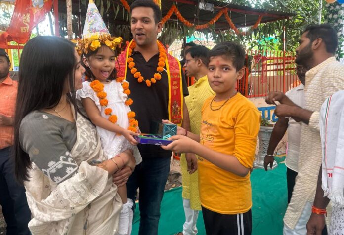 पालिकाध्यक्ष नेमीचंद जैन ने बताया कि उक्त कार्यक्रम में उनकी पोती कियाना जैन का मां दुर्गा की प्रतिमा के समक्ष जन्मदिन मनाया गया। इस मौके पर कियाना के पिता दक्ष व माता अपरा ने माता का आशीर्वाद लिया और बंगाली समाज के लोगों के बीच केक काटकर पुत्री का जन्मदिन मनाया। कियाना ने इस मौके पर करीब 200 से अधिक बच्चों को बोतल व ट्रॉफी के पैकेट वितरित किए। वहीं लोगों ने बालिका को आशीर्वाद दिया। पालिकाध्यक्ष ने बताया कि हर वर्ष यह जन्मदिन माता मंदिर परिसर में ही मनाया जाता है।